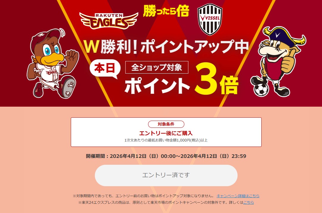 楽天市場「野球とサッカーW勝利 ポイント3倍」を開始