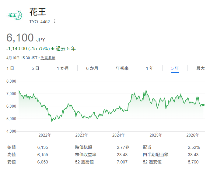 ワイ「高配当株より増配株が良いんだなーよーし花王を買おう」