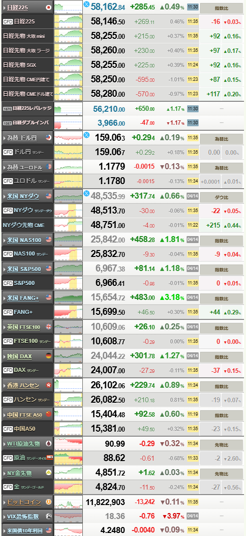 ただ円はそれ以上に弱さが目立ち、1ドル159円付近での推移となっているお。