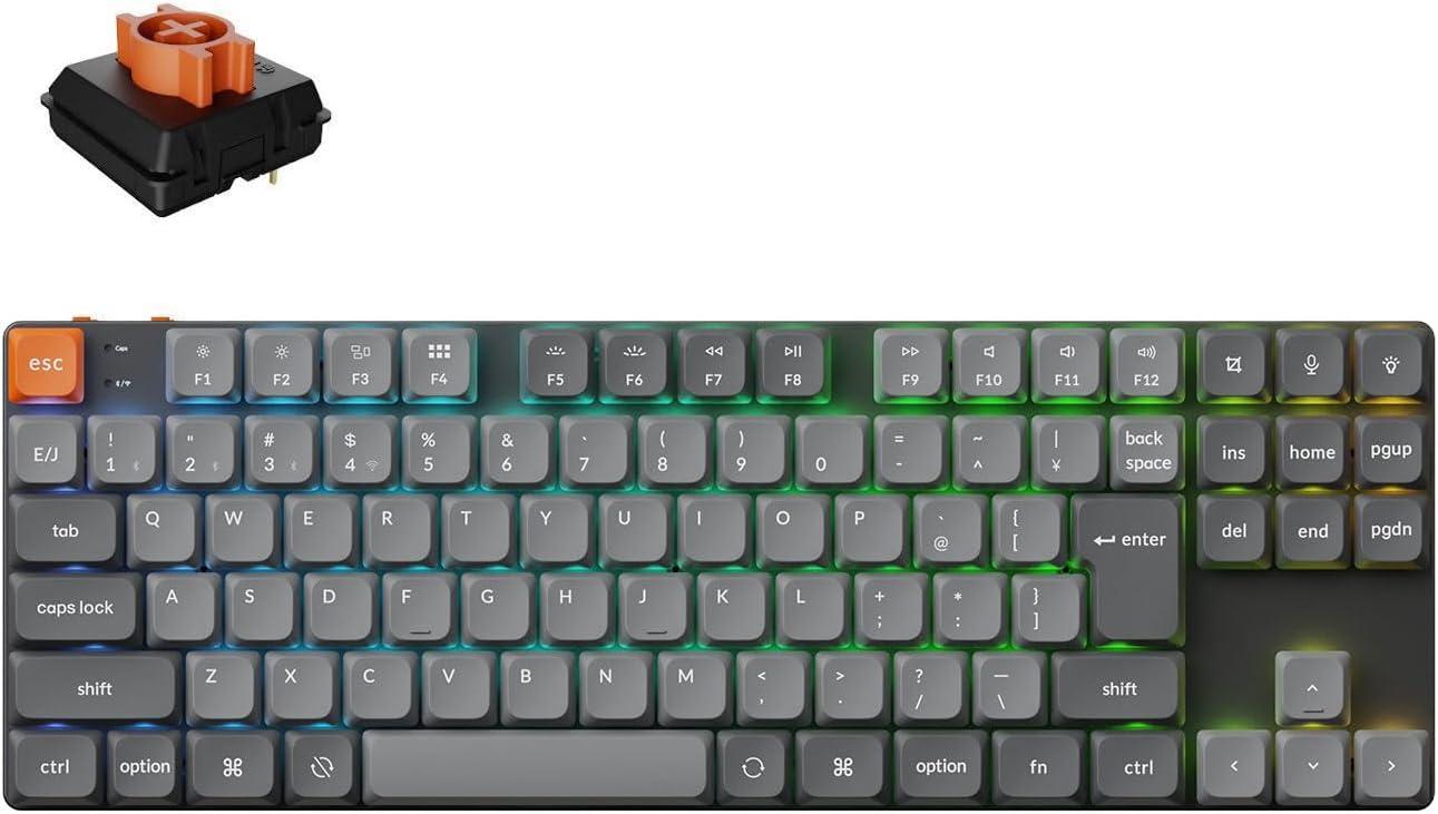 【国内正規品】Keychron K1 Max ロープロファイル ワイヤレス・カスタムメカニカルキーボード、TKL、2.4GHz・Bluetooth無線・有線対応/QMKプログラム可能/日本語JISかな印字なし、RGBライト、ホットスワップ対応、ダブルショットPBTキーキャップ、Mac Windows対応 (ロープロファイルSilent K Proメカニカル赤軸(ホットスワップ))