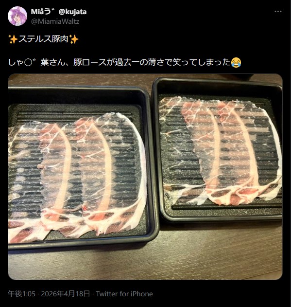 しゃ◯゛葉さん、豚ロースが過去一の薄さで笑ってしまった😂