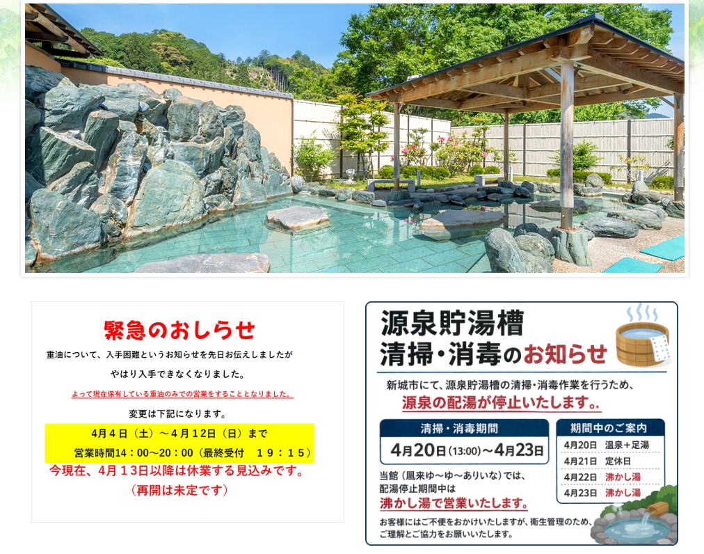 愛知県新城市の温泉施設「鳳来ゆ〜ゆ〜ありいな」、重油不足でボイラーが焚けず臨時休業 重油販売業者「仕入れできない」