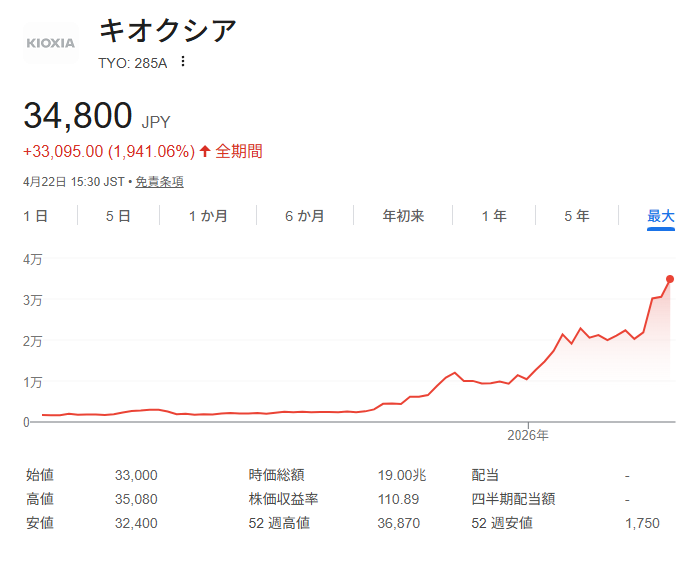 キオクシアとかいう謎の企業が半年で株価十倍wwwwwwwwwwwww