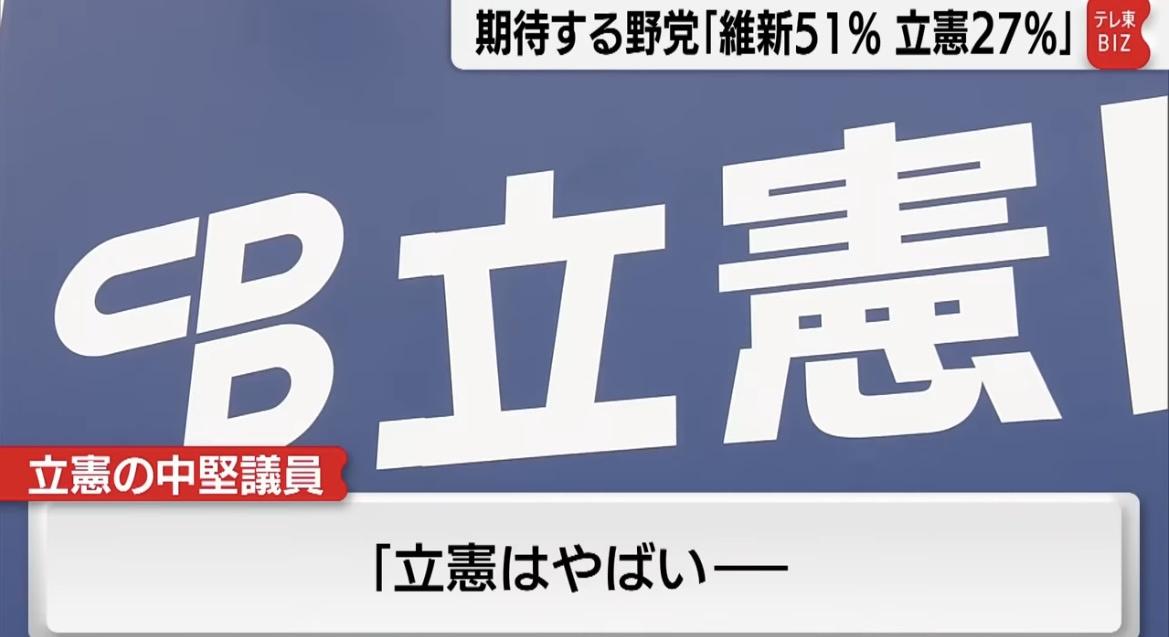 期待する野党、維新51% 立民は27%で支持率も逆転