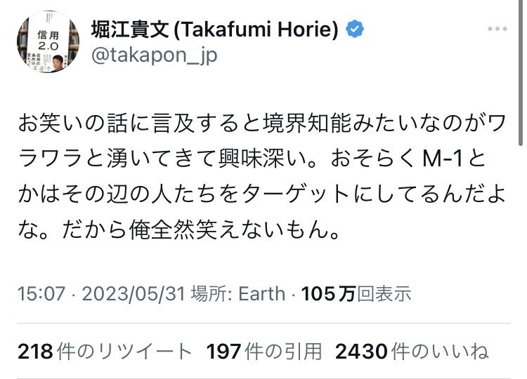 — 堀江貴文(Takafumi Horie) (@takapon_jp) May 31, 2023
