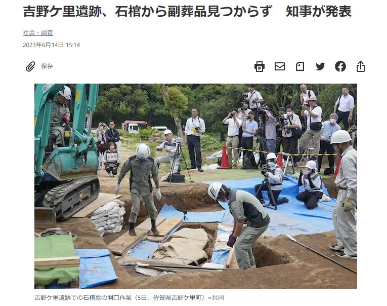 【悲報】例の吉野ヶ里遺跡の石棺墓、人骨や副葬品は見つからず