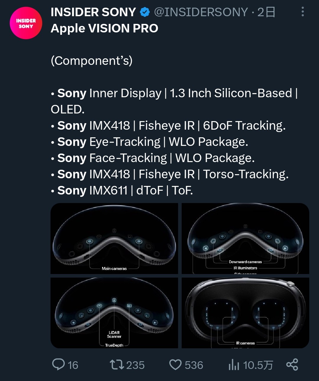 Apple Vision Pro、ソニー製のパーツまみれだった…