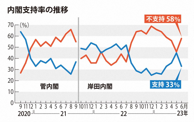 岸田内閣の支持率が12ポイントも下落してしまう 支持33%・不支持58%