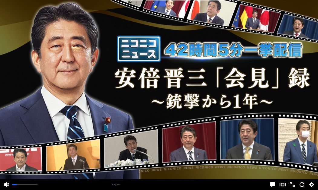 ニコ生、安倍晋三氏の一周忌に合わせて首相時代の会見動画約42時間分をノーカット配信