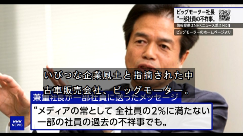 ビッグモーターの社長、全店長へのLINEでメディア批判「一部の社員がやった事を組織ぐるみだと決めつけてる」
