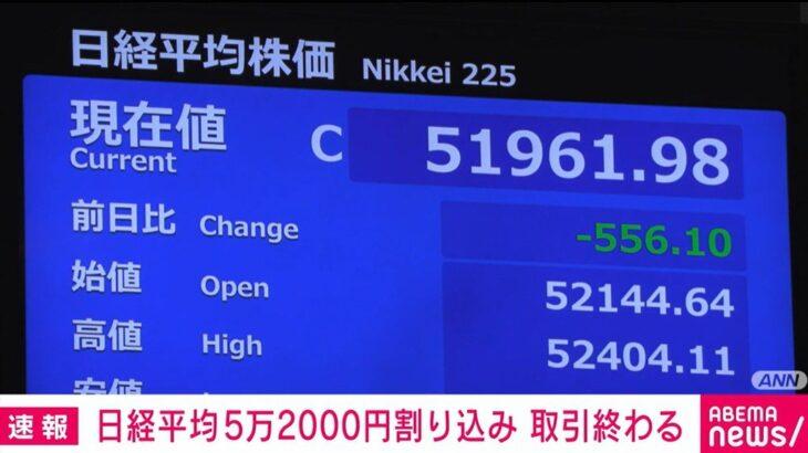 日経平均5万2000円割り込み 取引終わる 「軍民両用品」輸出規制強化影響か