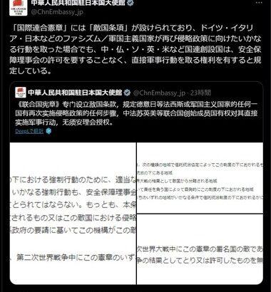 中国大使館「国連安保理の許可なしに日本攻撃可能」 1: 名無し 2025/11/21(金) 20:03:29.66 ID:XX50ZSG09 中華人民共和国駐日本国大使館@ChnEmbassy_jp「国際連合憲章」には「敵国条項」が設けられており、ドイツ・イタリア・日本などのファシズム/軍国主義国家が再び侵略政策に向けたいかなる行動を取った場合でも、中・仏・ソ・英・米など国連創設国は、安全保障理事 […]